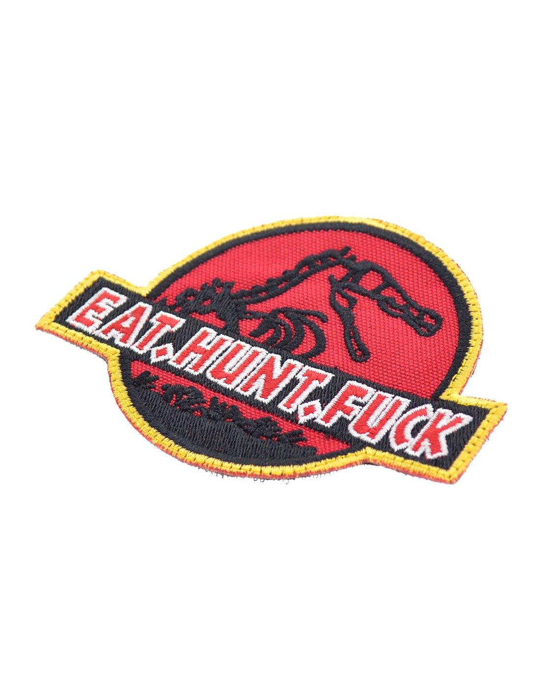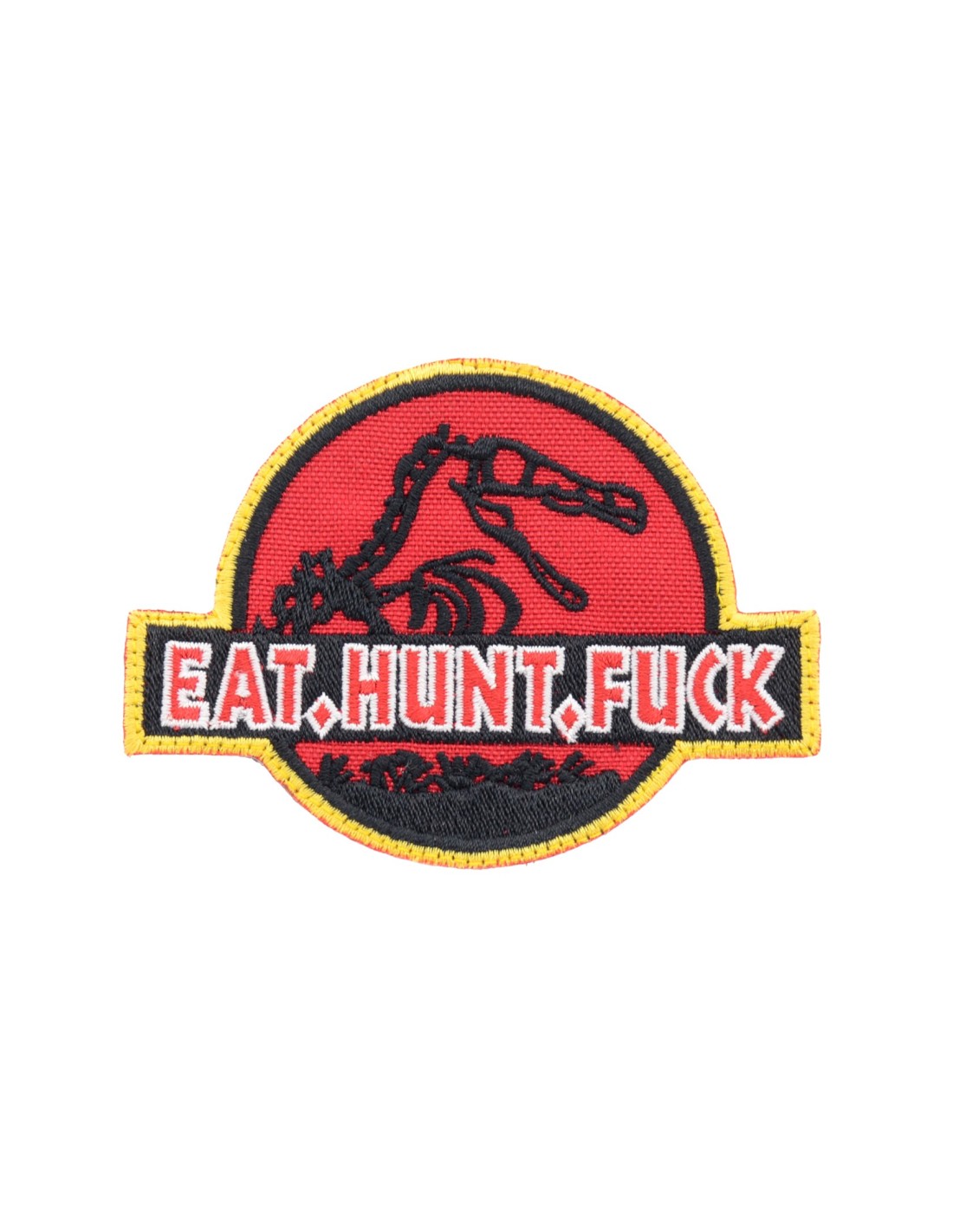 Jurassic Park Eat Hunt Fuck è una patch realizzata con tecnica di ricamo di alta qualità. E' realizzata con tessuto e filato resistenti e duraturi. Questa tecnica rappresenta la tradizione nel mondo delle patch In tutte le nostre patch viene utilizzato Velcro® originale Velcro® Brand Hook che viene cucito al tessuto per garantire una massima durata nel tempo. Le nostre patch sono dotate di Velcro® maschio nel retro.