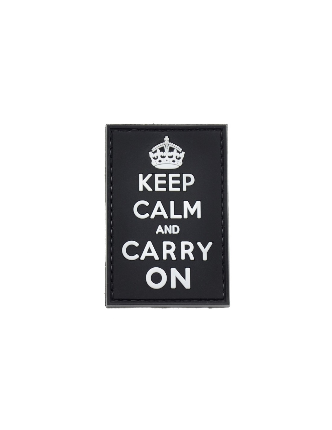 Keep Calm and Carry On è una patch realizzata in PVC di alta qualità, una gomma flessibile e duratura. La patch è realizzata in PVC per poter esprimere al meglio i dettagli del disegno rendendo un effetto 3D mai visto prima. In tutte le nostre patch viene utilizzato Velcro® originale Velcro® Brand Hook che viene cucito al PVC per garantire una massima durata nel tempo. Le nostre patch sono dotate di Velcro® maschio nel retro.