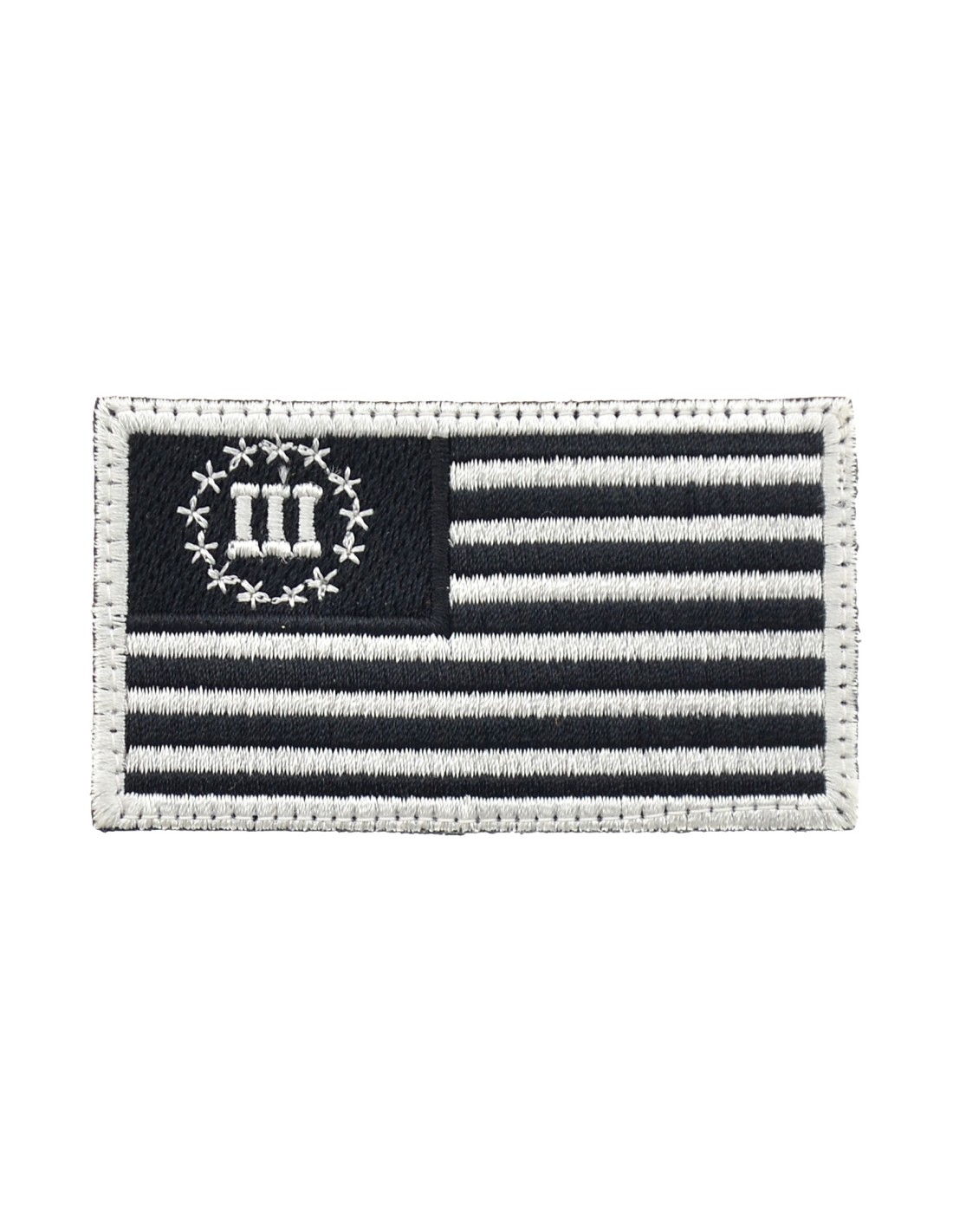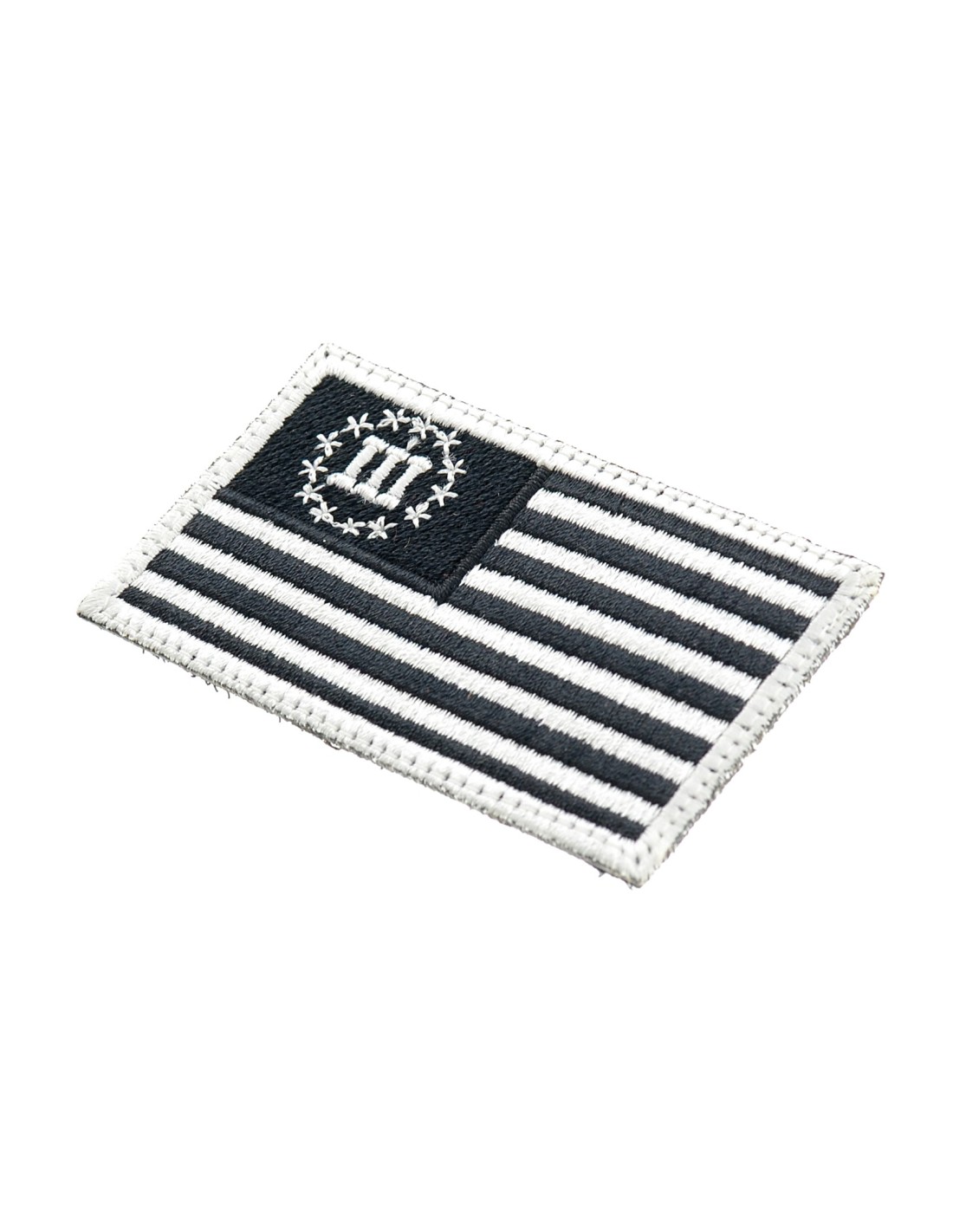Usa Three Percenters Flag is an high quality embroidered patch. It is made with durable and strong fabric and threads. This kind of manufacture represents the tradition of patch All our patches have original Velcro® Brand Hook sew on backing for maximum stability and durability. All our patches have Velcro® backing.