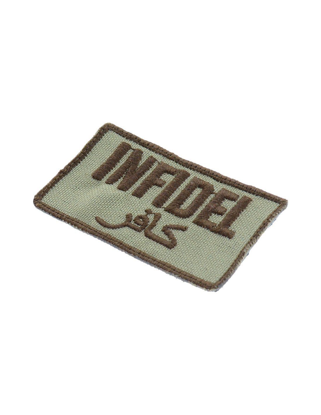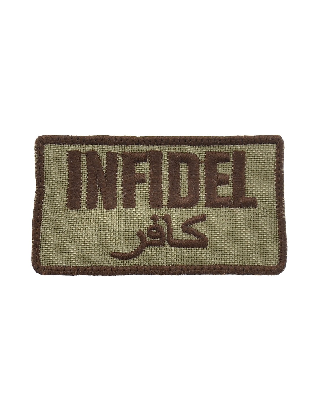 Infidel is an high quality embroidered patch. It is made with durable and strong fabric and threads. This kind of manufacture represents the tradition of patch All our patches have original Velcro® Brand Hook sew on backing for maximum stability and durability. All our patches have Velcro® backing.