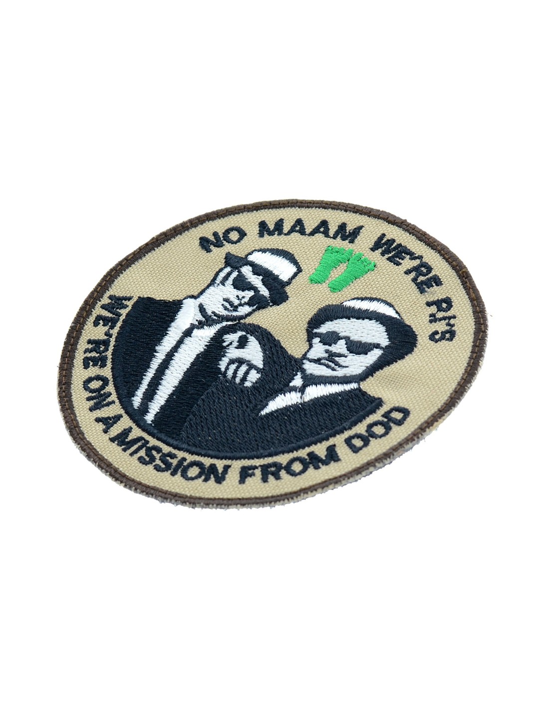 No Maam Were PJ's is an high quality embroidered patch. It is made with durable and strong fabric and threads. This kind of manufacture represents the tradition of patch All our patches have original Velcro® Brand Hook sew on backing for maximum stability and durability. All our patches have Velcro® backing.