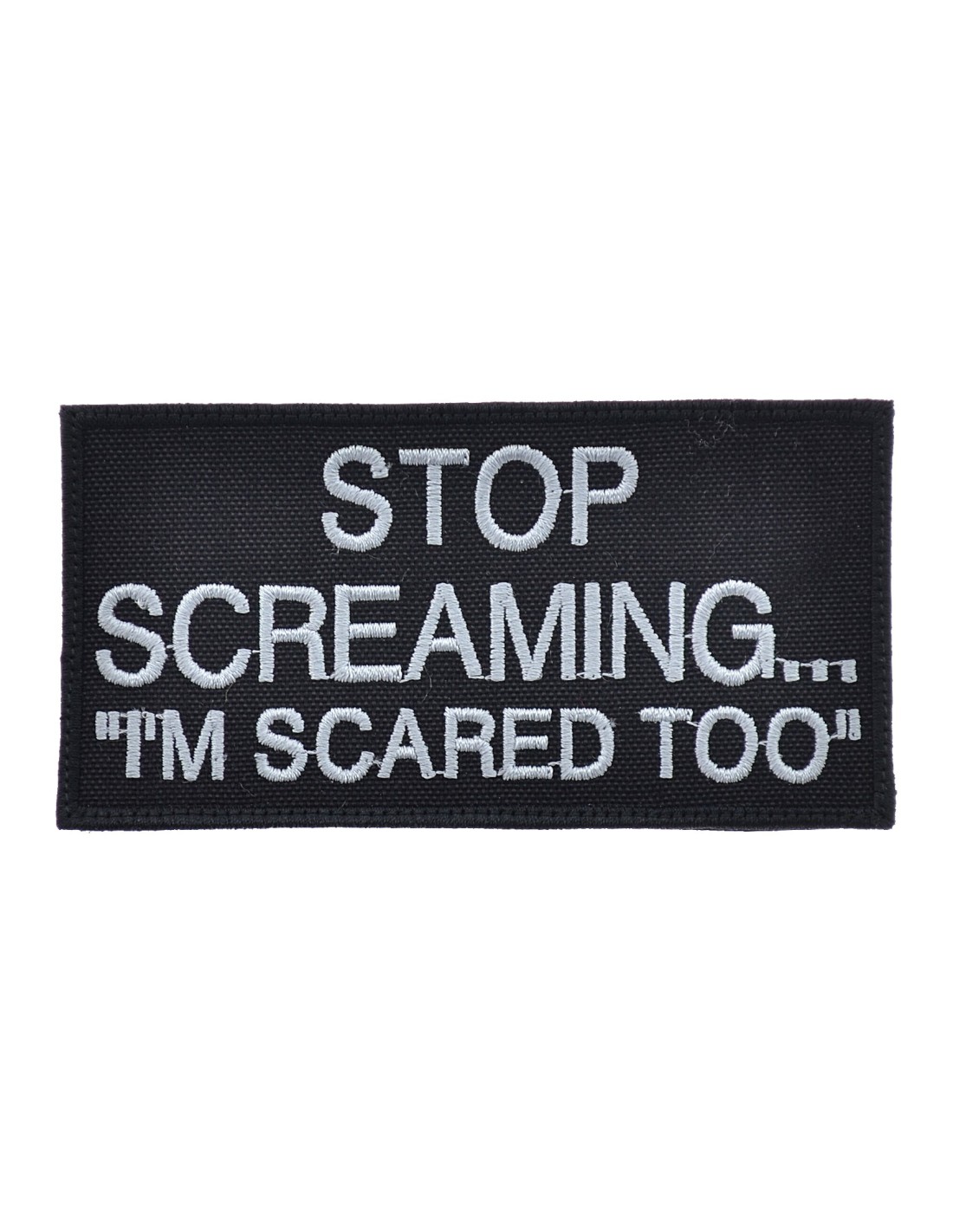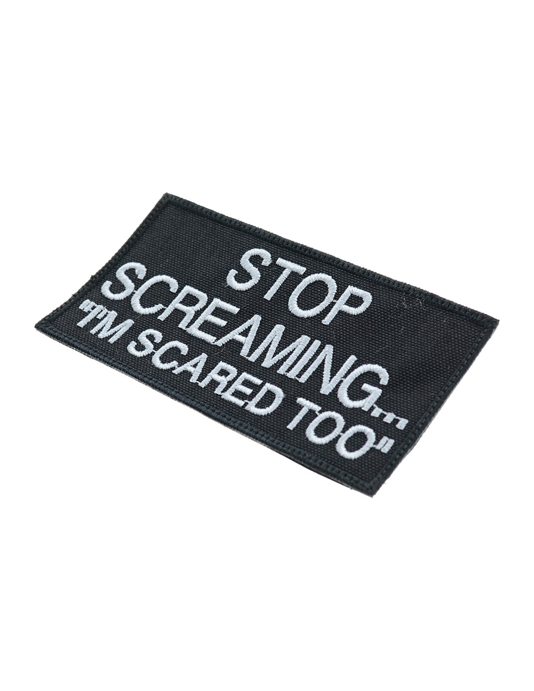 PJ Stop Screaming is an high quality embroidered patch. It is made with durable and strong fabric and threads. This kind of manufacture represents the tradition of patch All our patches have original Velcro® Brand Hook sew on backing for maximum stability and durability. All our patches have Velcro® backing.