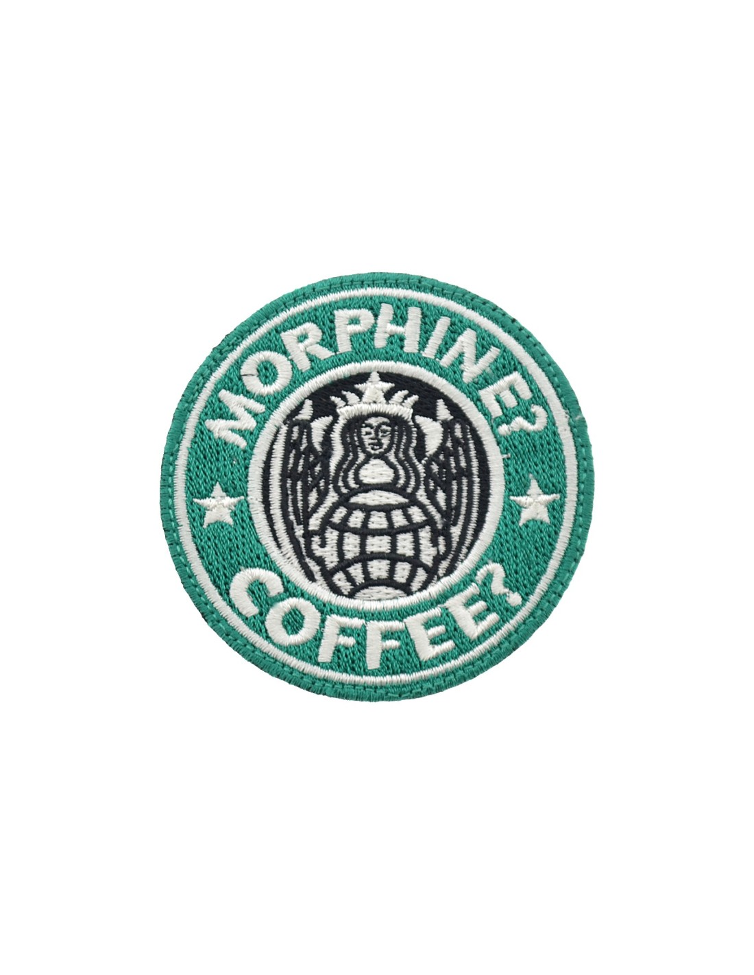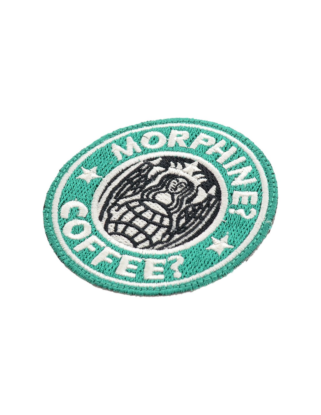 PJ Morphine? Coffee? is an high quality embroidered patch. It is made with durable and strong fabric and threads. This kind of manufacture represents the tradition of patch All our patches have original Velcro® Brand Hook sew on backing for maximum stability and durability. All our patches have Velcro® backing.