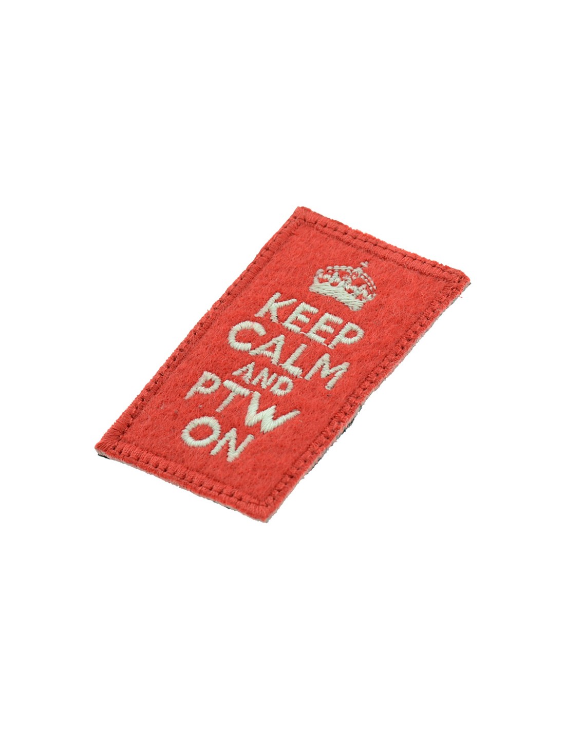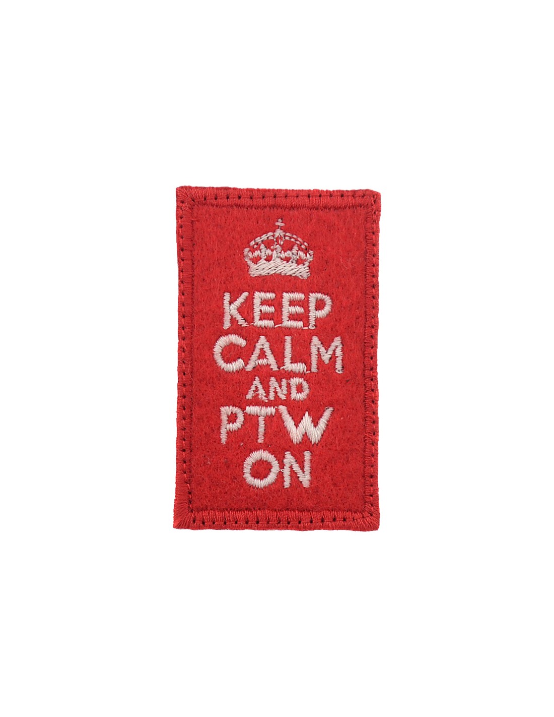 Keep Calm and PTW On is an high quality embroidered patch. It is made with durable and strong fabric and threads. This kind of manufacture represents the tradition of patch All our patches have original Velcro® Brand Hook sew on backing for maximum stability and durability. All our patches have Velcro® backing.