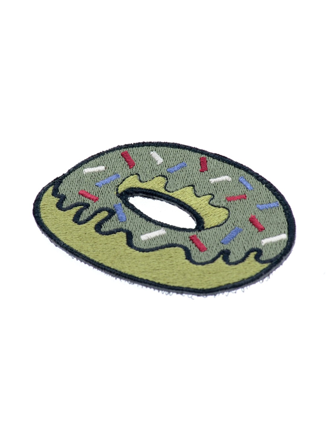 Donut is an high quality embroidered patch. It is made with durable and strong fabric and threads. This kind of manufacture represents the tradition of patch All our patches have original Velcro® Brand Hook sew on backing for maximum stability and durability. All our patches have Velcro® backing.