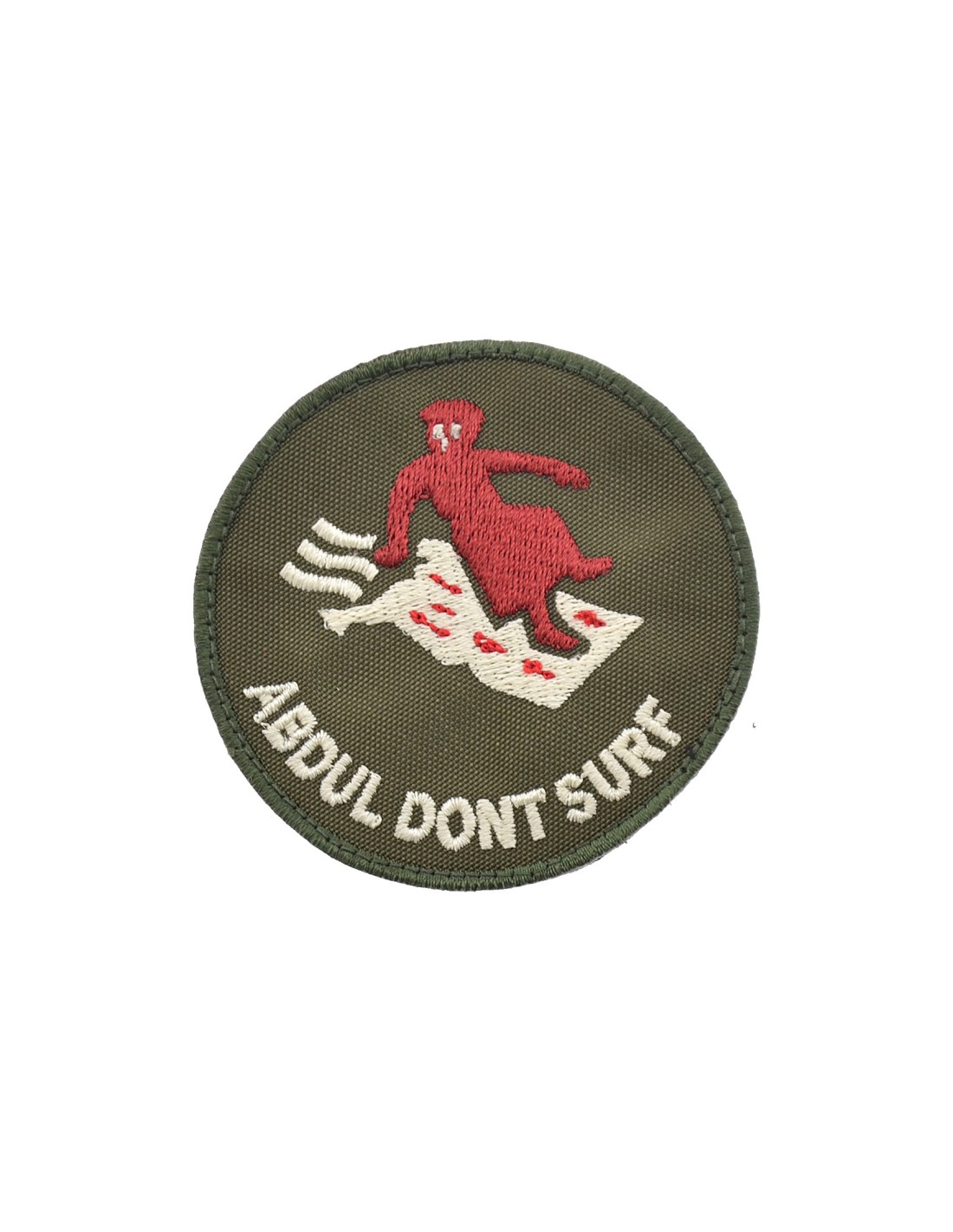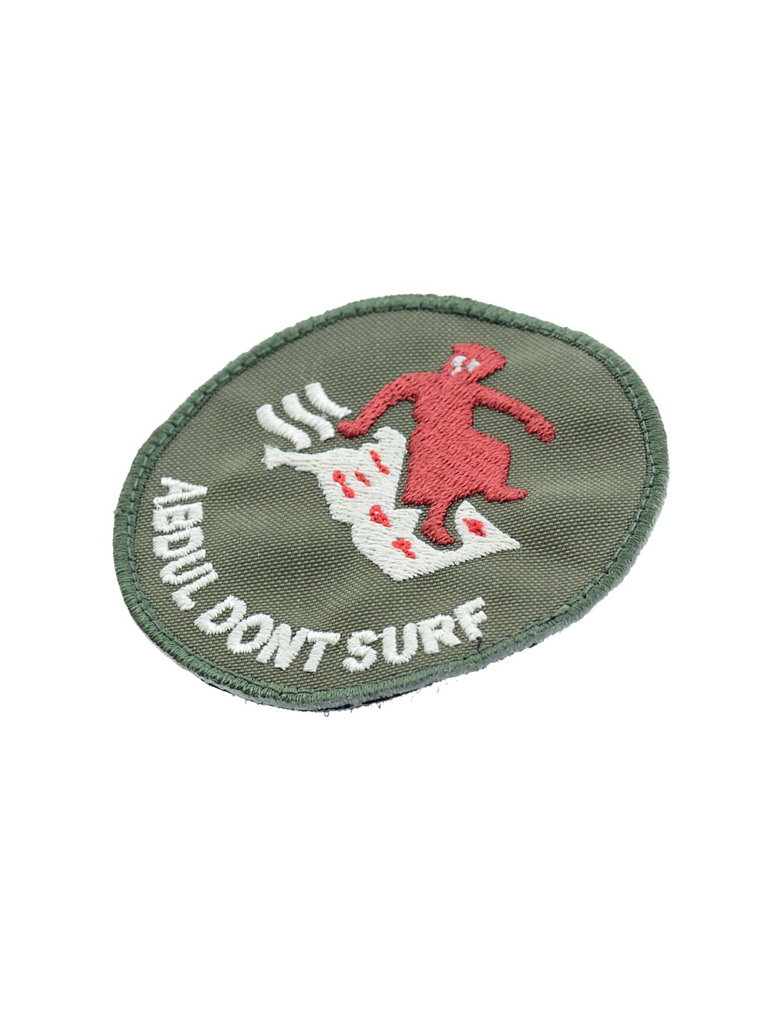 Abdul Don't Surf Afghanistan is an high quality embroidered patch. It is made with durable and strong fabric and threads. This kind of manufacture represents the tradition of patch All our patches have original Velcro® Brand Hook sew on backing for maximum stability and durability. All our patches have Velcro® backing.