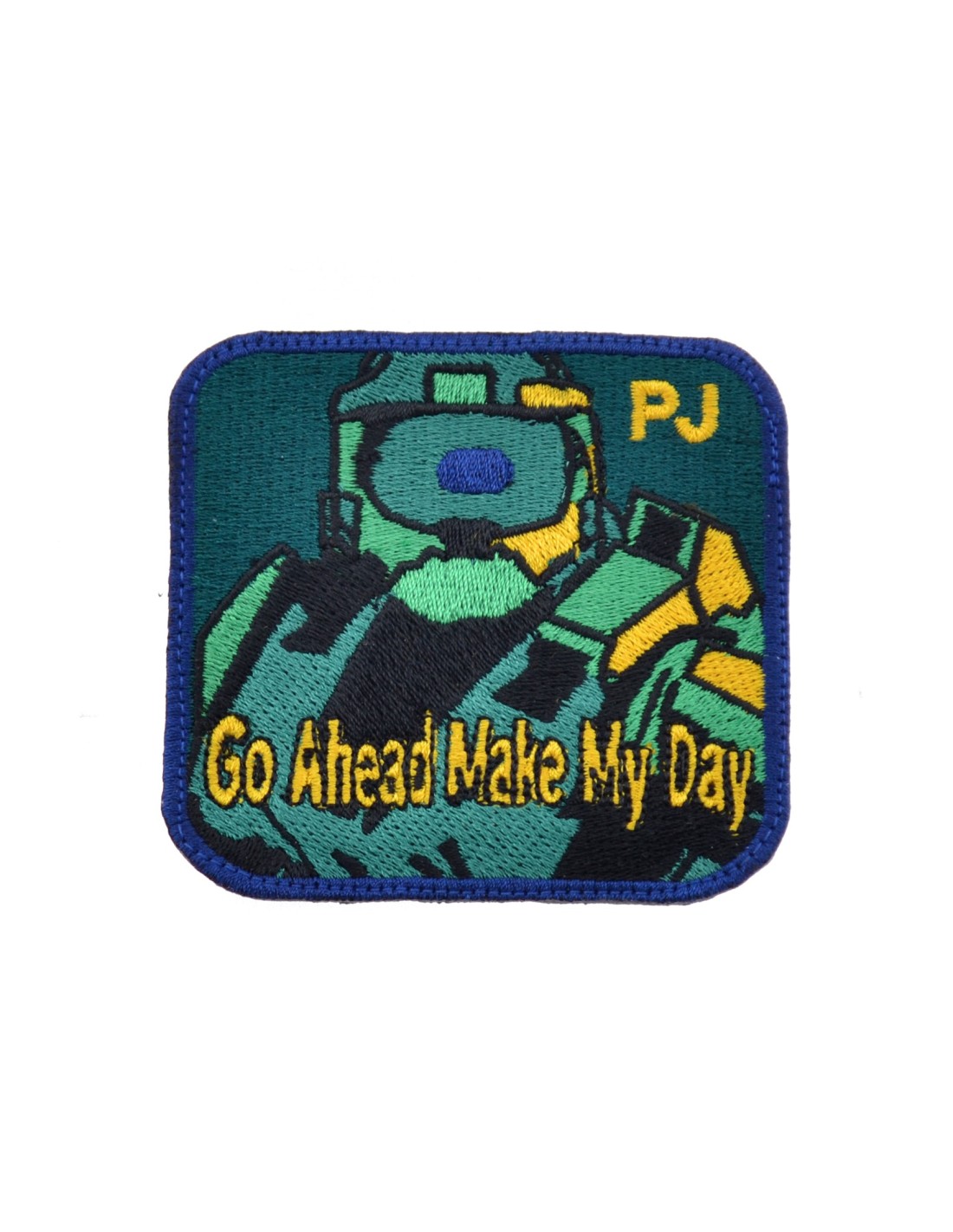 PJ Halo Go Ahead Make My Day is an high quality embroidered patch. It is made with durable and strong fabric and threads. This kind of manufacture represents the tradition of patch All our patches have original Velcro® Brand Hook sew on backing for maximum stability and durability. All our patches have Velcro® backing.