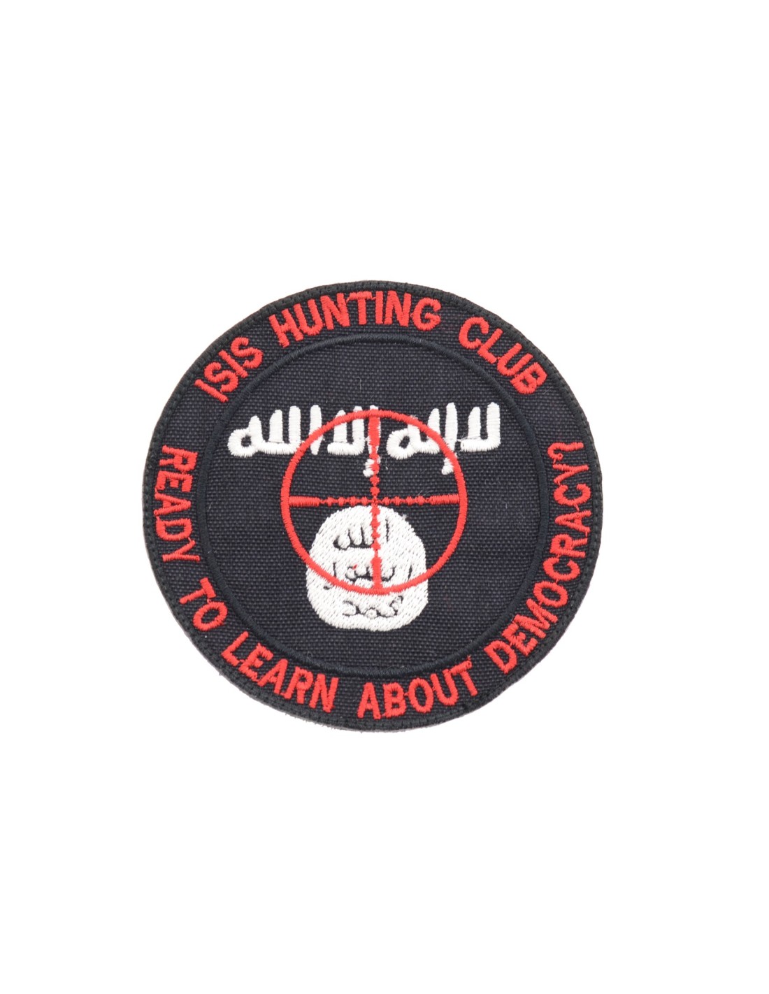 ISIS Hunting Club is an high quality embroidered patch. It is made with durable and strong fabric and threads. This kind of manufacture represents the tradition of patch All our patches have original Velcro® Brand Hook sew on backing for maximum stability and durability. All our patches have Velcro® backing.