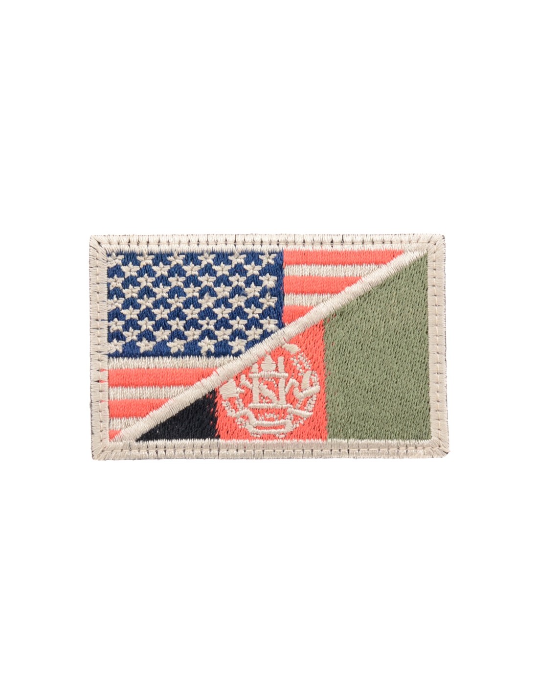 Usa/Afghanistan Flag is an high quality embroidered patch. It is made with durable and strong fabric and threads. This kind of manufacture represents the tradition of patch All our patches have original Velcro® Brand Hook sew on backing for maximum stability and durability. All our patches have Velcro® backing.