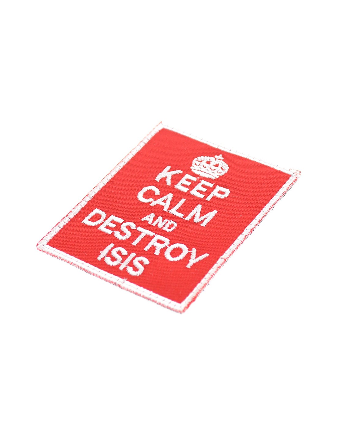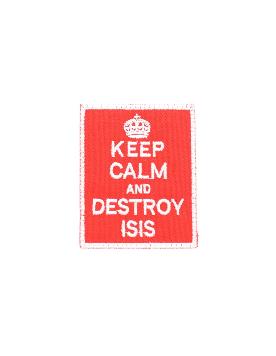 Keep Calm and Destroy Isis is an high quality embroidered patch. It is made with durable and strong fabric and threads. This kind of manufacture represents the tradition of patch All our patches have original Velcro® Brand Hook sew on backing for maximum stability and durability. All our patches have Velcro® backing.