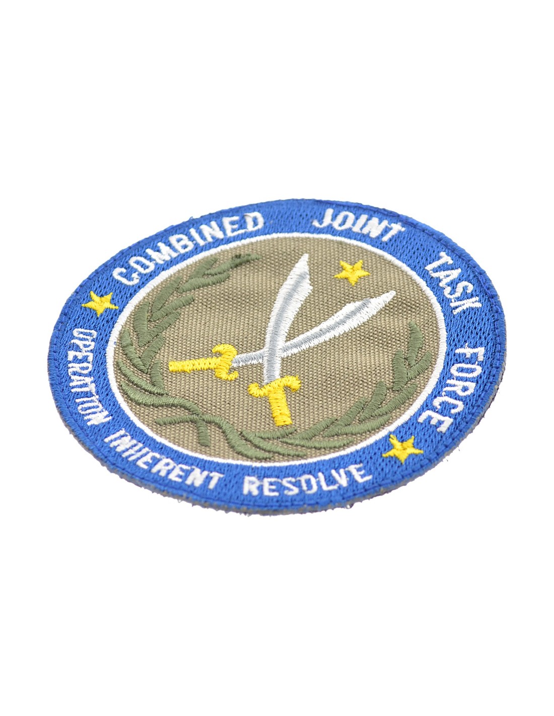 Inherent Resolve CJTF is an high quality embroidered patch. It is made with durable and strong fabric and threads. This kind of manufacture represents the tradition of patch All our patches have original Velcro® Brand Hook sew on backing for maximum stability and durability. All our patches have Velcro® backing.