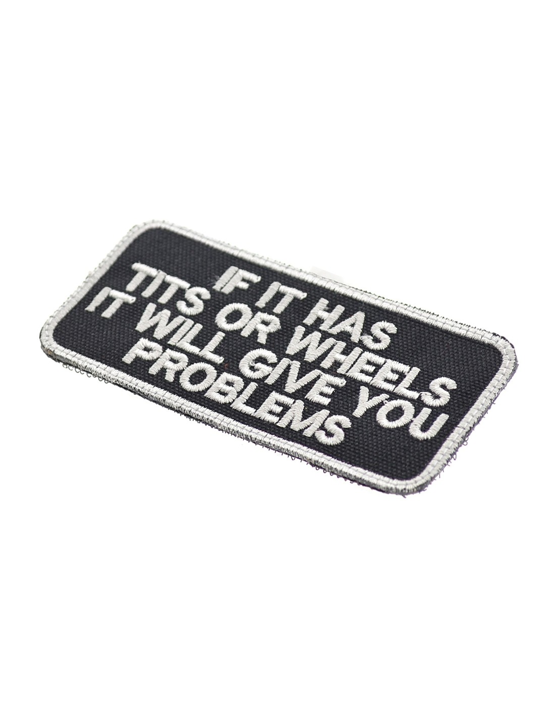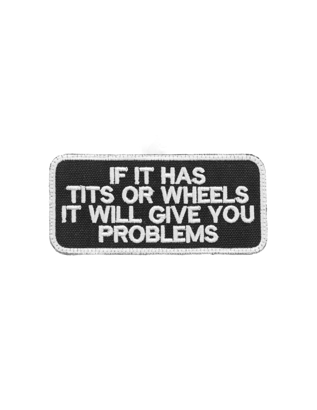 Tits or Wheels It Will Give You Problems is an high quality embroidered patch. It is made with durable and strong fabric and threads. This kind of manufacture represents the tradition of patch All our patches have original Velcro® Brand Hook sew on backing for maximum stability and durability. All our patches have Velcro® backing.