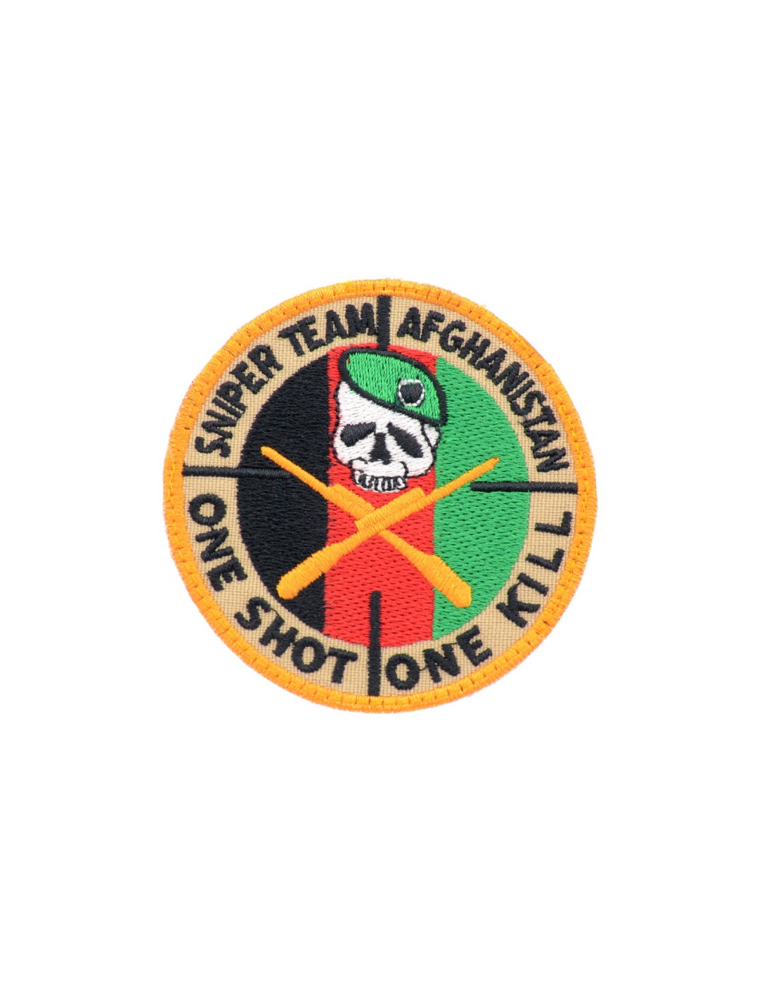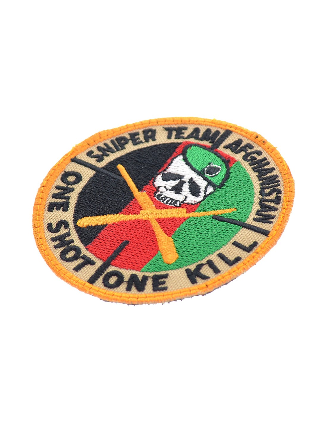 Sniper Team Afghanistan is an high quality embroidered patch. It is made with durable and strong fabric and threads. This kind of manufacture represents the tradition of patch All our patches have original Velcro® Brand Hook sew on backing for maximum stability and durability. All our patches have Velcro® backing.