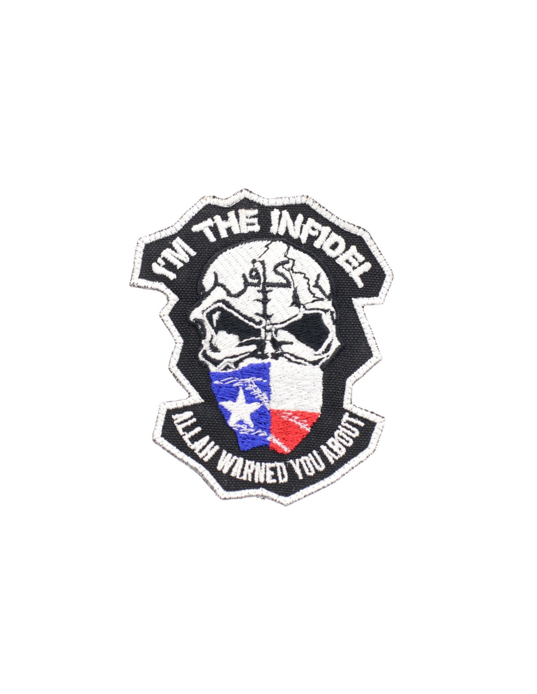 I'm the Infidel….Allah Warned You About is an high quality embroidered patch. It is made with durable and strong fabric and threads. This kind of manufacture represents the tradition of patch All our patches have original Velcro® Brand Hook sew on backing for maximum stability and durability. All our patches have Velcro® backing.