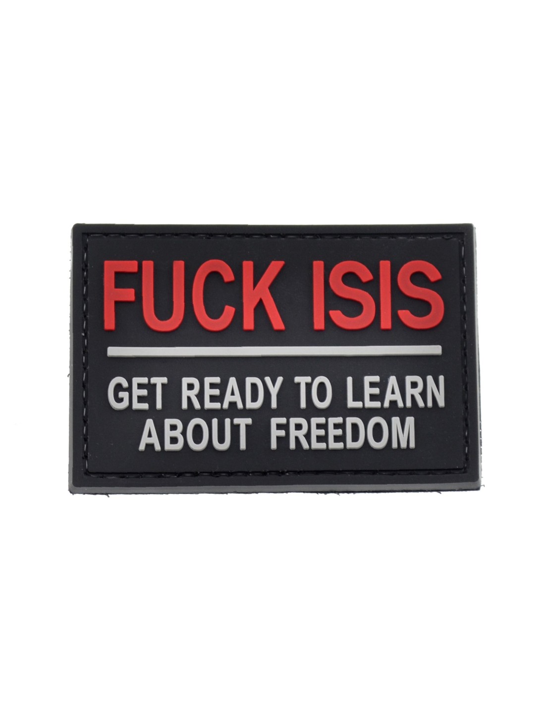 Fuck ISIS Get Ready to Learn About Freddom is an high quality PVC patch made with a durable and flexibile rubber. The patch is made of PVC to best express details and for a 3D effect never seen before. All our patches have original Velcro® Brand Hook sew on backing for maximum stability and durability. All our patches have Velcro® backing.