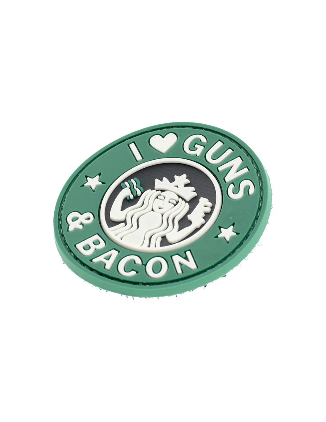 I Love Guns and Bacon is an high quality PVC patch made with a durable and flexibile rubber. The patch is made of PVC to best express details and for a 3D effect never seen before. All our patches have original Velcro® Brand Hook sew on backing for maximum stability and durability. All our patches have Velcro® backing.