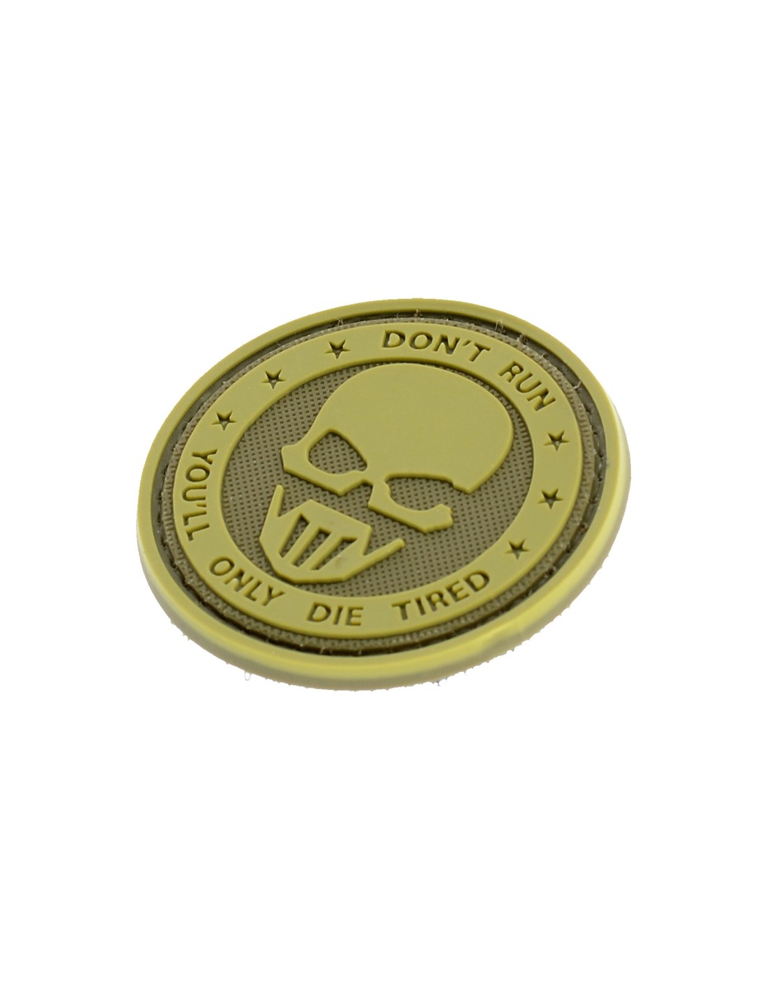 Don't Run You'll Only Die Tired is an high quality PVC patch made with a durable and flexibile rubber. The patch is made of PVC to best express details and for a 3D effect never seen before. All our patches have original Velcro® Brand Hook sew on backing for maximum stability and durability. All our patches have Velcro® backing.
